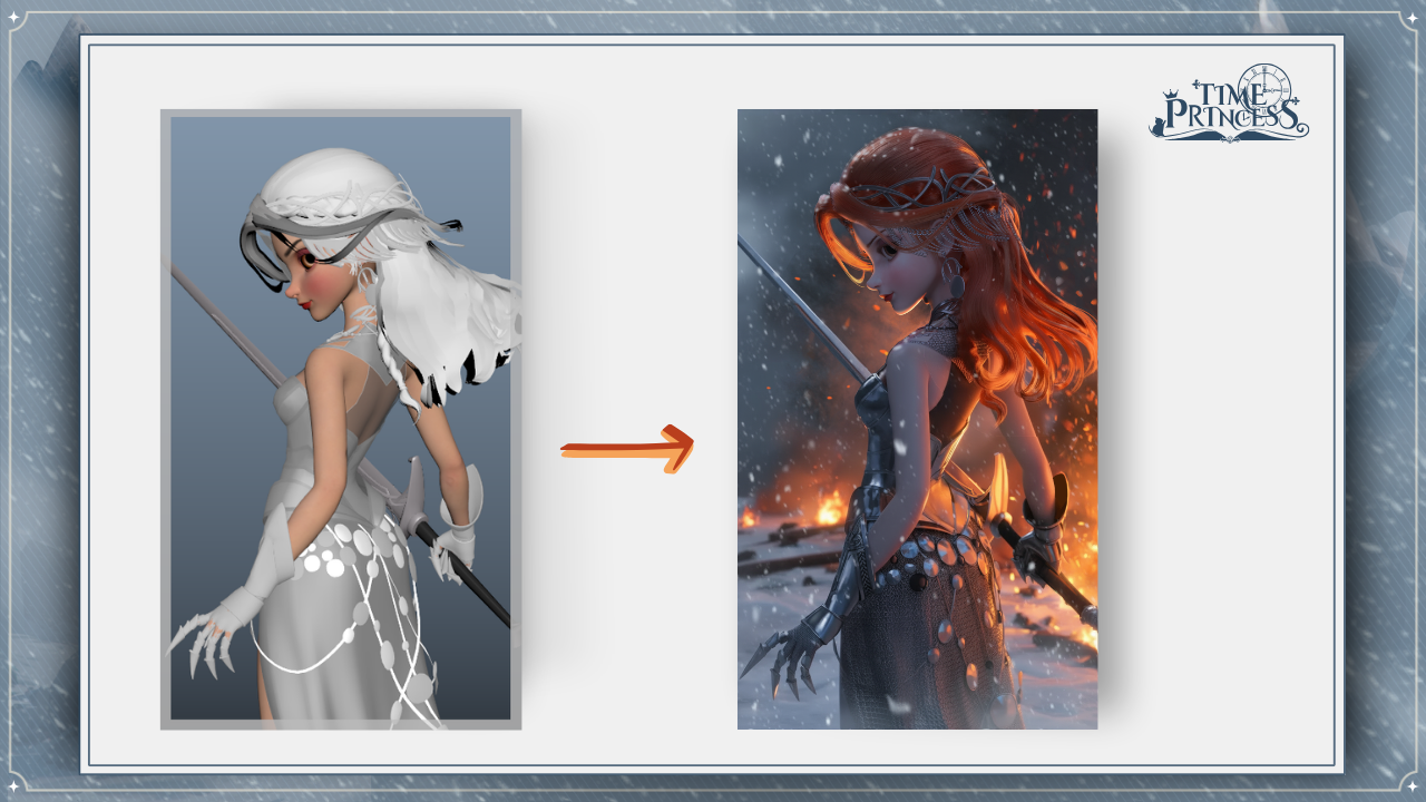 To reflect this, we chose an over-the-shoulder pose to highlight her confident and charismatic personality. It is combined with burning flames set against a snowy backdrop to create a striking contrast. What are your thoughts on this 3D cover? 😊